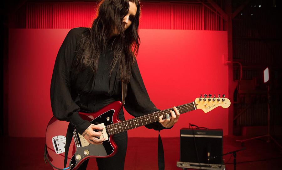 A purveyor of the American Professional Jazzmaster, Chelsea Wolfe claims that her circular, trance-like style is found in the comfort of the instrument. She feels that playing guitar is instinctual, and that “guitars have songs hidden inside them,” and you just have to coax them out.