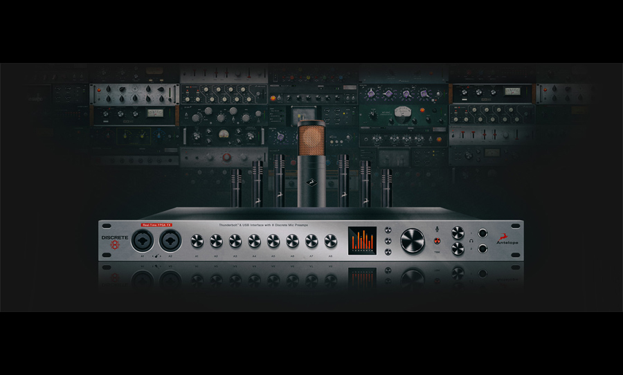 Antelope’s newly minted Discrete 8 audio interface is packed with high quality preamps, real time effects processing and modelling of classic microphones.
