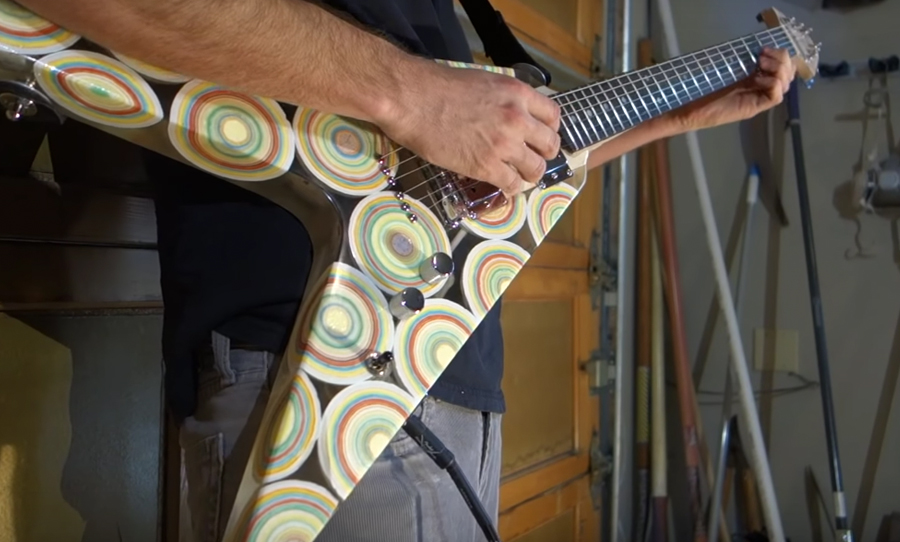 Youtuber Burls Art has made a bit of a splash with less-than-conventional guitar creations. Now he’s back with something sweeter, a Flying V made with Jawbreaker candies.
