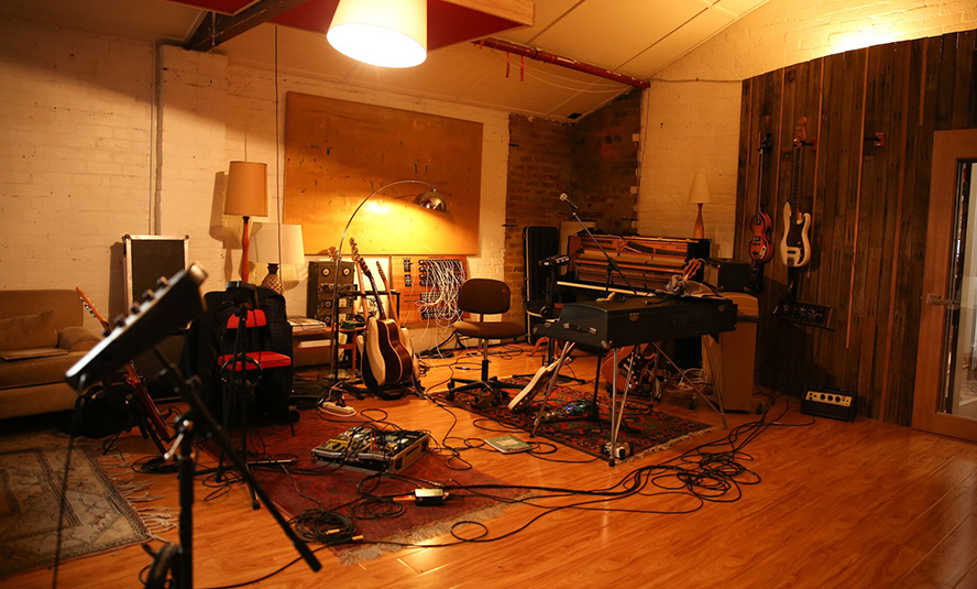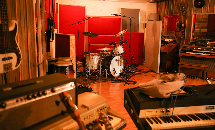It’s a really nice, airy space with lots of good sight lines across the room and booths. We mainly used the studio to track drums. We kept some guitar and bass parts. I re-recorded most of my guitar parts again at home. Vocals were all done at Matt Hosking’s house.