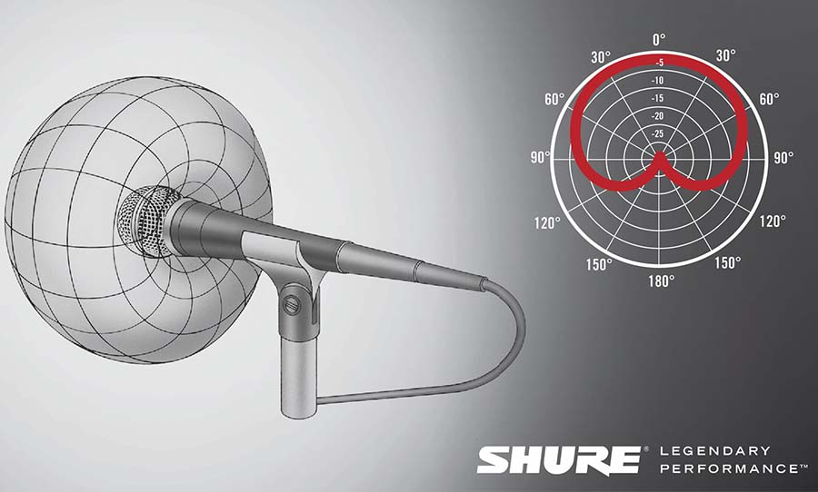 As with all directional microphones, a proximity effect means that a low frequency ensues when the mic is used up close, with this reducing as the source of the sound backs away. The SM58’s cardioid response reduces feedback on stage by minimising pickup from the rear and rear sides, where amplifiers are likely positioned.