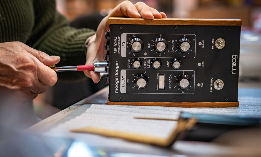 A stay of execution: the Moogerfooger is officially out of production, but after finding a cache of vintage BBD chips, a small batch of MF-104M Analog Delays have been made.