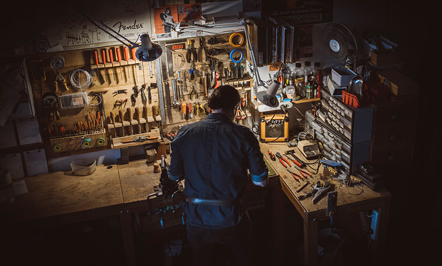 MATT: It might be a similar task that I’m doing day-to-day, but it’s never the same job, you know what I mean? Everything from customers saying “hey, these strings aren’t sounding right” to “my guitar’s not playing the same as it was.” And for me it’s a service, in the way you’d service a car. Timber is an organic fibre, and it contracts and expands with weather and humidity, so things often need to be adjusted. So around the time seasons change I’m super busy. Especially with the dry winter and humid spring we just had. Everyone’s instruments need adjusting. But you know, regular use, heavy touring, it all has that impact.