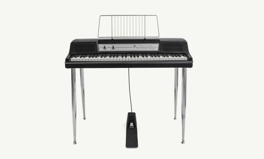 It wasn’t until 1954 (decades after “talkies” put the monolithic movie organ out of work) that the world saw the first iteration of the Wurlitzer electric piano (or electronic piano as it says on the front panel). This, however, was still a time well before the widespread use of synthesis via electronic circuits. To create its customary tone, it relied on traditional mechanical techniques, combined with an electric guitar style pickup.
