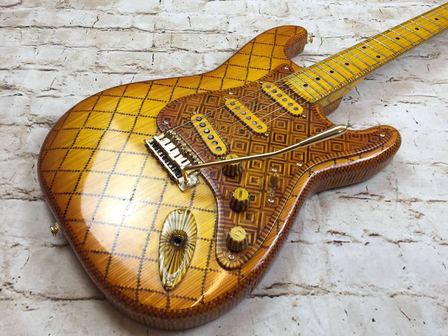 Intriguingly, from a distance, the guitar presents as relatively normal, albeit with an ornate parquetry pattern. It’s only when you zoom in that it reveals itself to be stunning piece of craftsmanship.